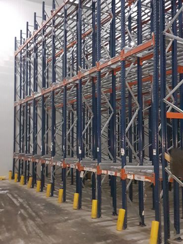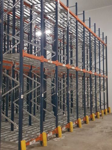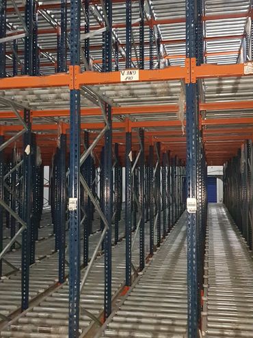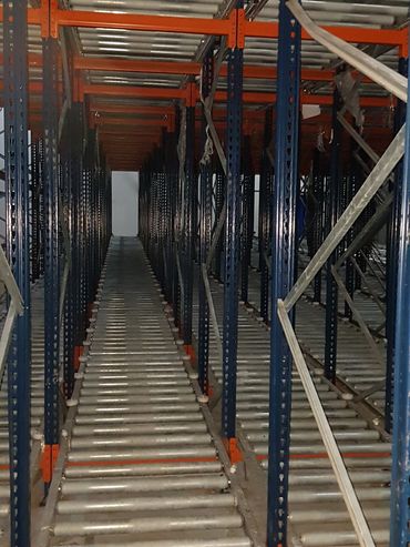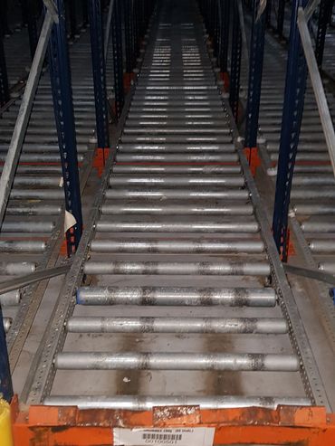 Las estanterías dinámicas son estructuras compactas formadas por canales de almacenaje equipadas con rodillos colocados con una ligera inclinación que permiten el deslizamiento de los palets.
